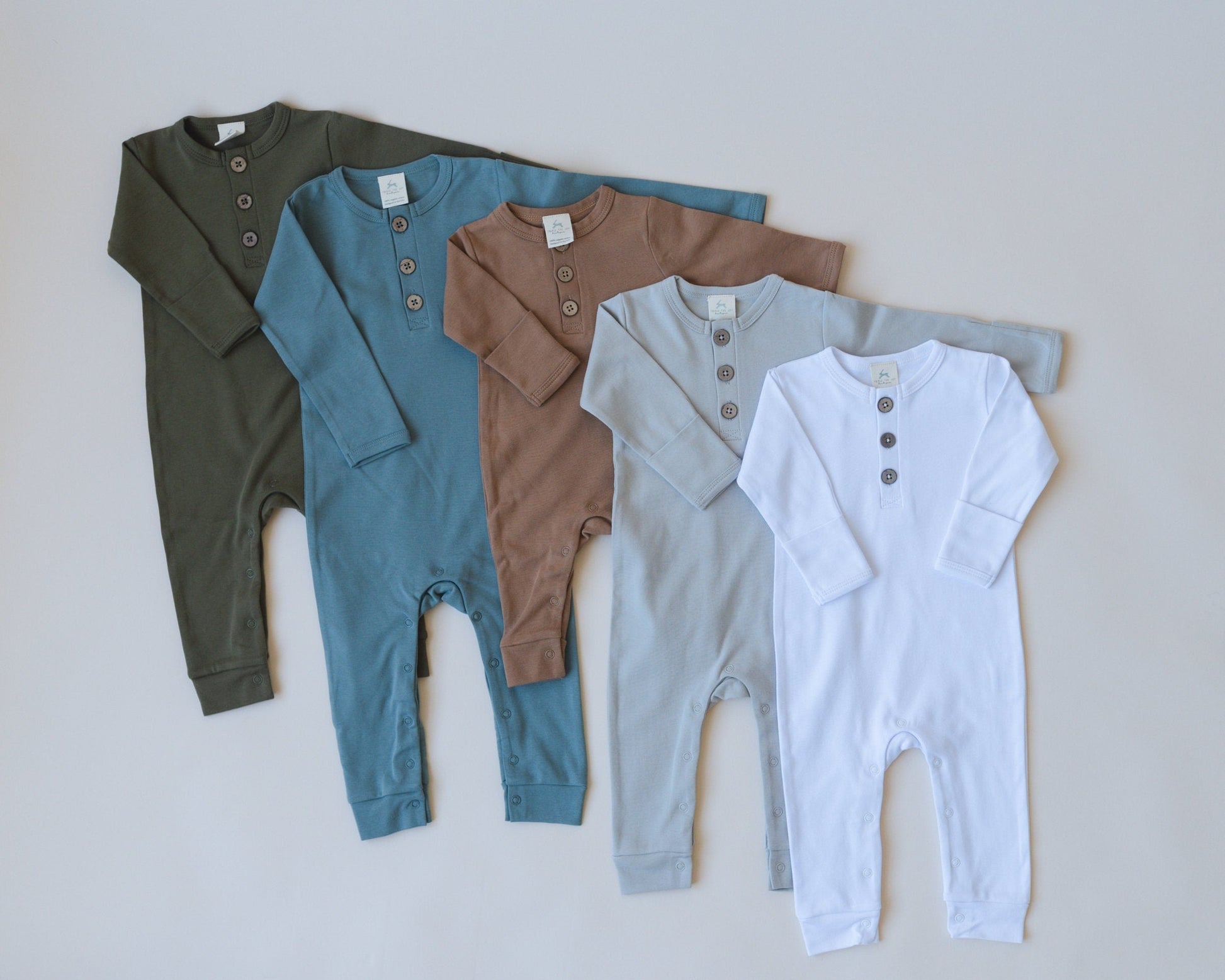 Neutral organic cotton long-sleeved romper. 100% organic cotton interlock fabric, very soft!